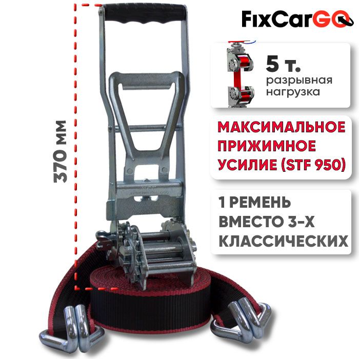 Ремень стяжной 5 т, механизм с двойной зубчатой передачей